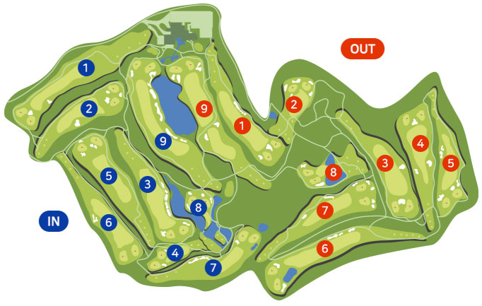 총 18홀(Par 72) IN코스, OUT코스로 구성되어있습니다.