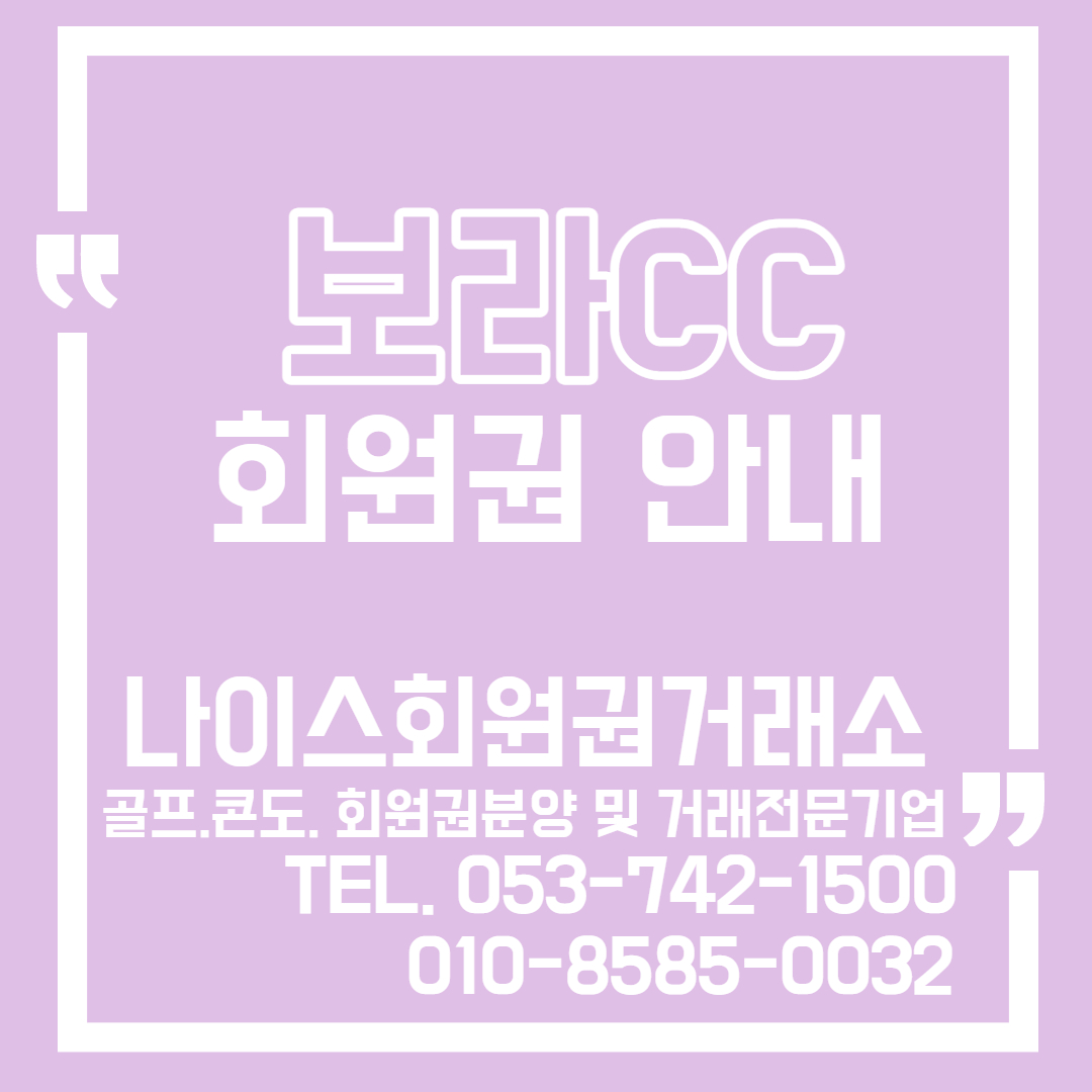 보라CC 회원권에 관심있으신 분은 나이스회원권거래소로 문의주시면