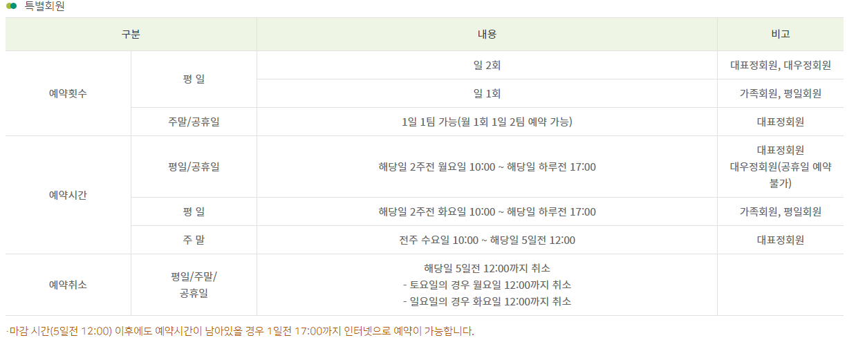 특별회원권은 정회원과 가족회원 뿐만 아니라 평일회원과 무기명회원까지