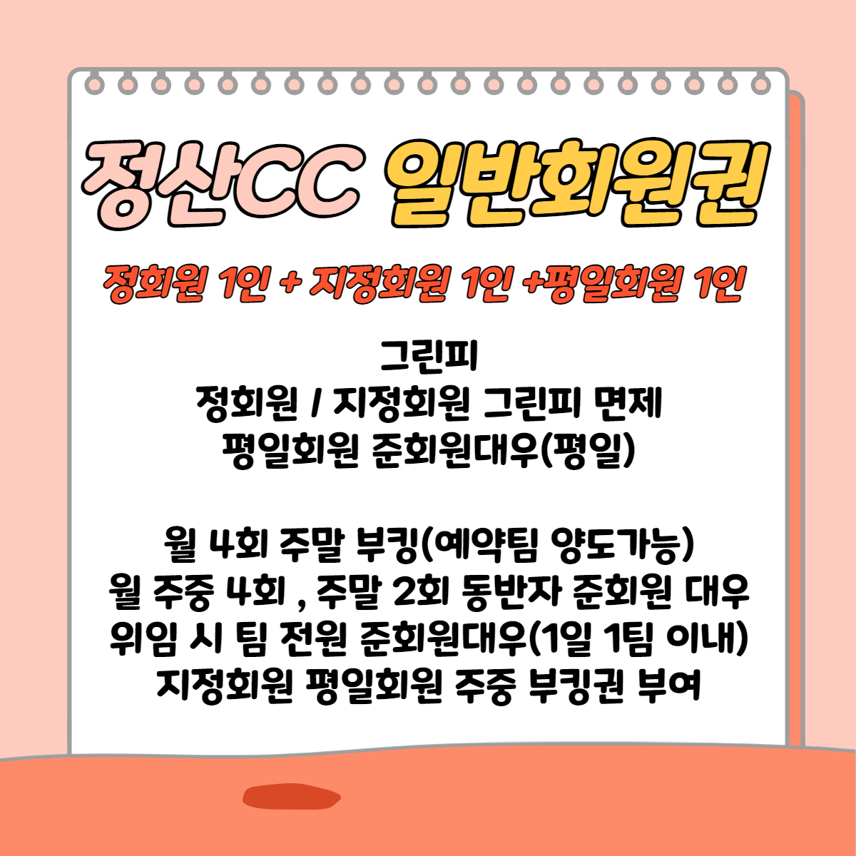 정산CC회원권은 일반회원권과 특별회원권(VVIP회원권)으로 구성되어있습니다.