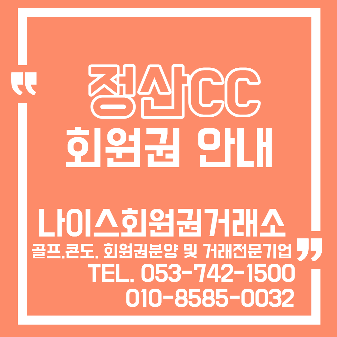 정산CC 회원권에 관심있으신 분은 나이스회원권거래소로 문의주시면