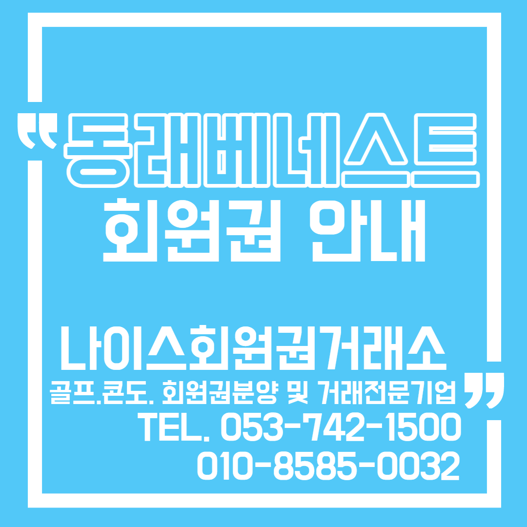 동래베네스트CC 회원권에 관심있으신 분은 나이스회원권거래소로 문의주시면