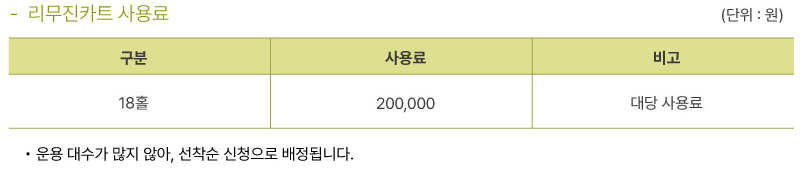 - 정회원 그린피 주중 90,000원/ 주말 100,000원