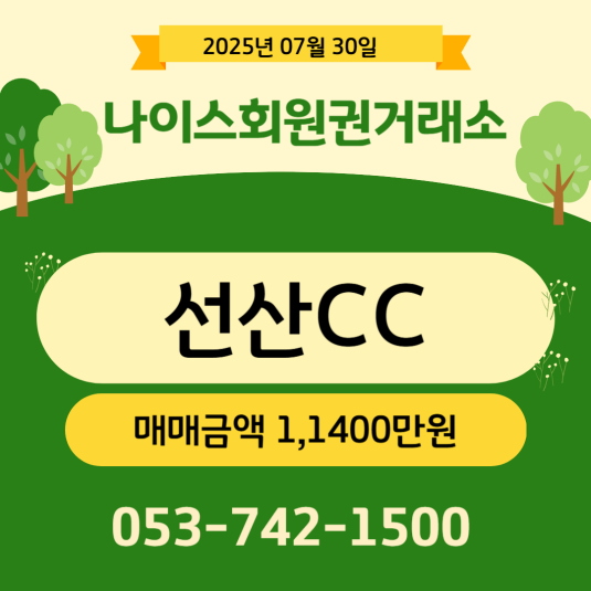 선산CC 회원권에 관심있으신 분은 나이스회원권거래소로 문의주시면