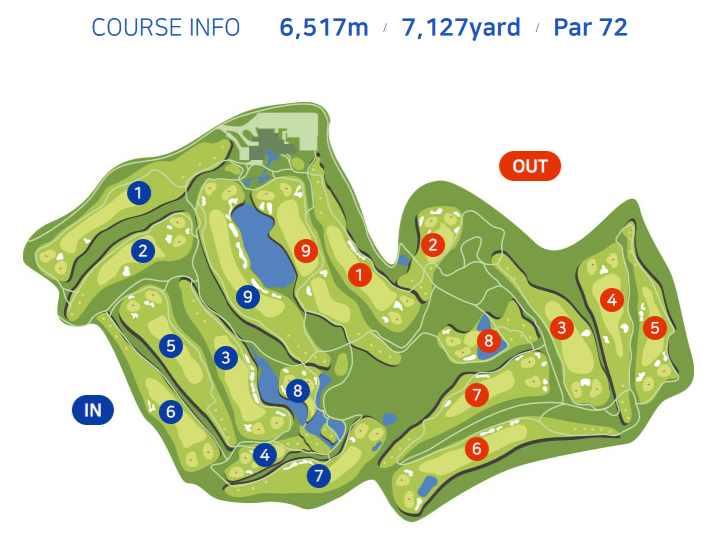 총 18홀의 아웃, 인 코스는 넓은 페어웨이와 다양한 크기의