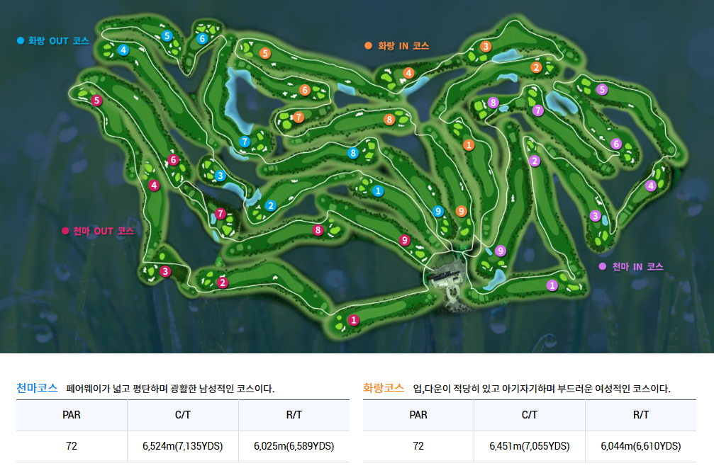 각각 18홀씩 총 36홀 규모의 회원제 골프장입니다