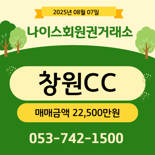 창원CC 회원권에 관심있으신 분은 나이스회원권거래소로 문의주시면