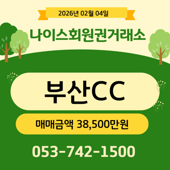 부산CC 회원권에 관심있으신 분은 나이스회원권거래소로 문의주시면