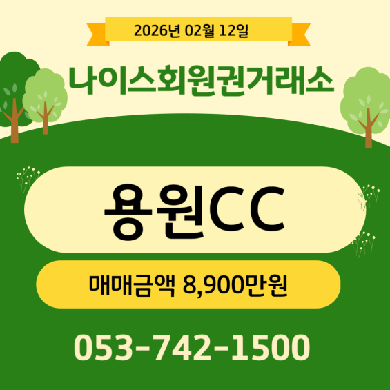 용원CC 회원권에 관심있으신 분은 나이스회원권거래소로 문의주시면