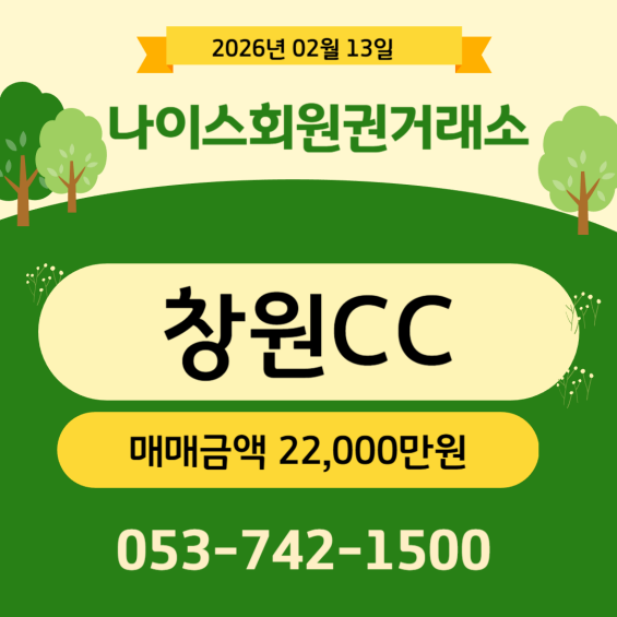 창원CC 회원권에 관심있으신 분은 나이스회원권거래소로 문의주시면