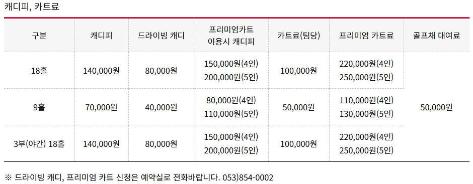 <대구CC 요금 안내>