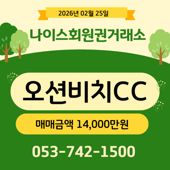 오션비치CC 회원권에 관심있으신 분은 나이스회원권거래소로 문의주시면