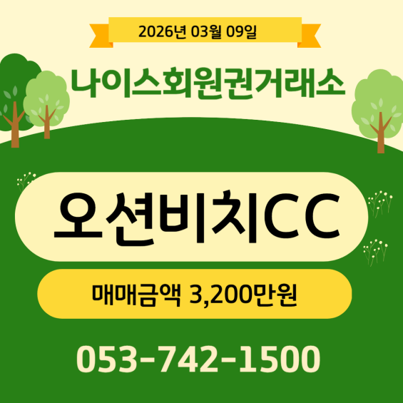 오션비치CC 회원권에 관심있으신 분은 나이스회원권거래소로 문의주시면