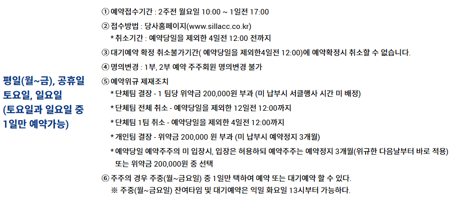 예약 접수 기간 : 2주 전 월요일 10:00 1일 전 17:00