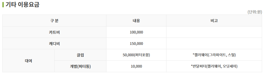 <힐마루CC 요금 안내>