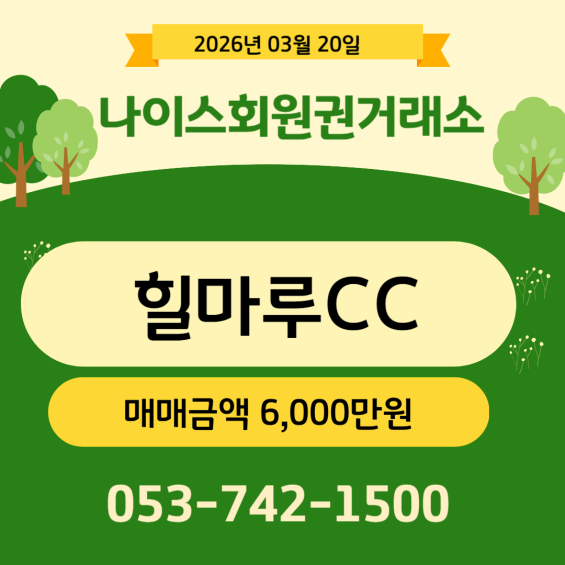 힐마루CC 회원권에 관심있으신 분은 나이스회원권거래소로 문의주시면