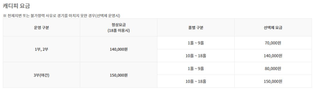 <창원CC 요금 안내>