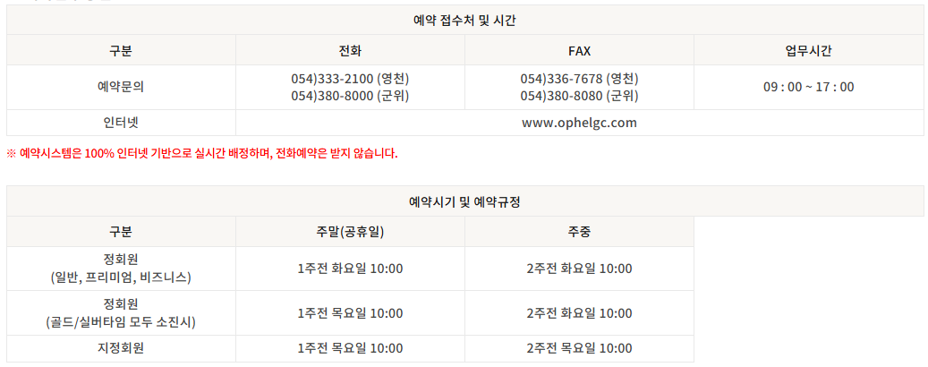 <오펠CC 예약 안내>