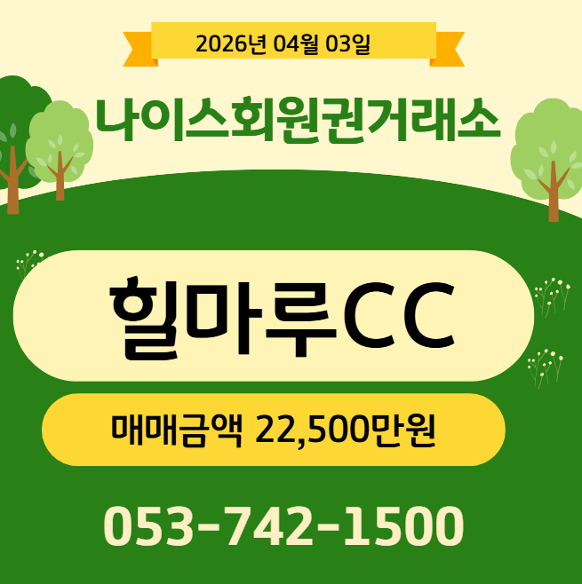 힐마루CC 회원권에 관심있으신 분은 나이스회원권거래소로 문의주시면