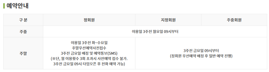 (정회원 우선 예약 배정 후 일반 예약 진행)