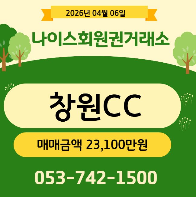 창원CC 회원권에 관심있으신 분은 나이스회원권거래소로 문의주시면