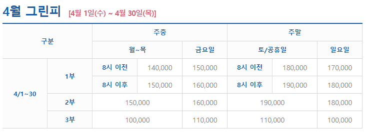 - 그린피는 시설이용료(1만원) 및 코스이용료가 포함된 금액입니다