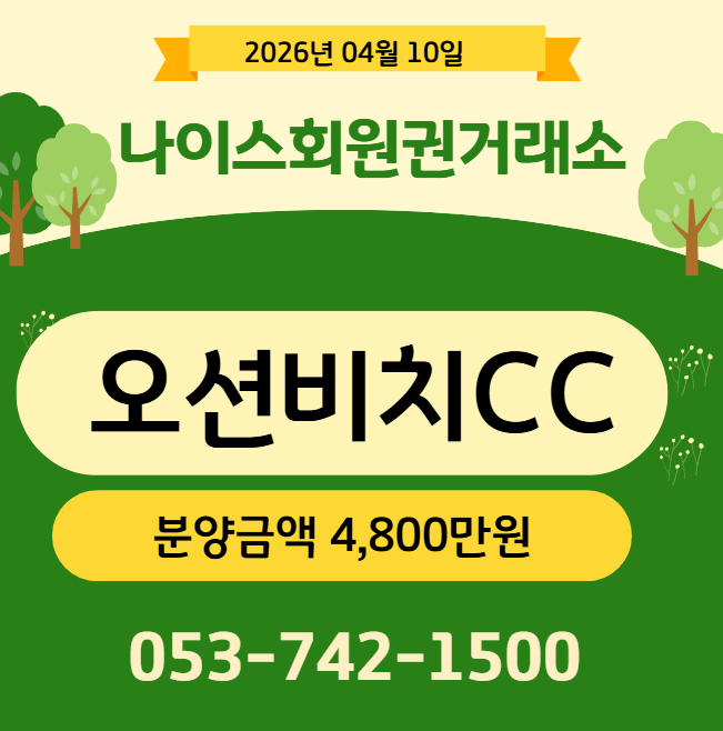 오션비치CC 회원권에 관심있으신 분은 나이스회원권거래소로 문의주시면