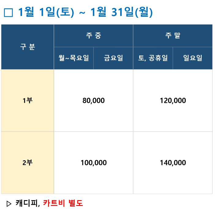 12월과 1월의 오션비치CC의 비회원 그린피를 안내드립니다.