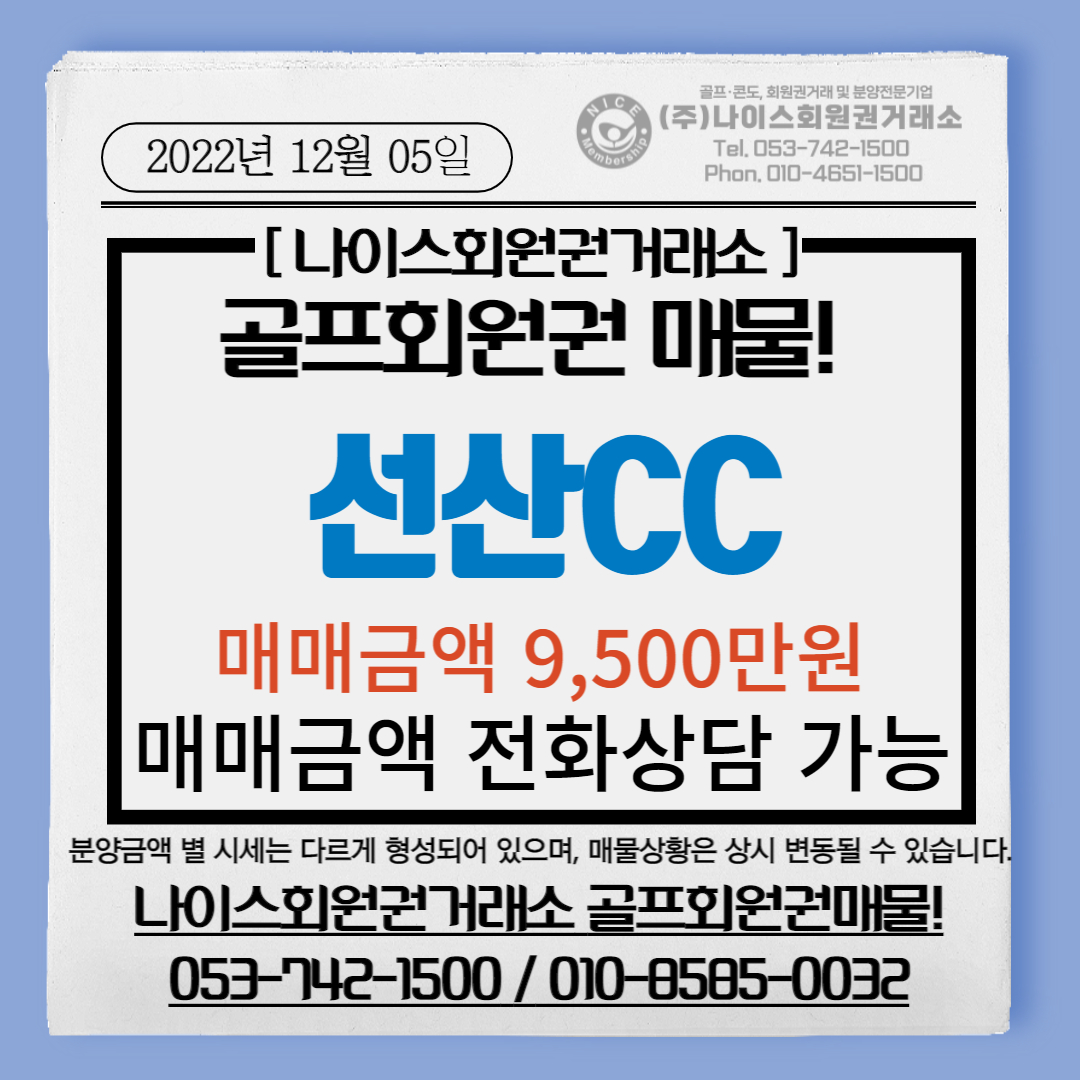 선산CC 회원권에 관심있으신 분은 나이스회원권거래소로 문의주시면