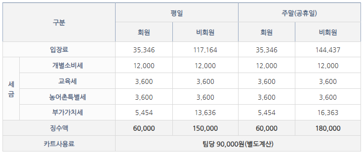 - 정회원 그린피 주중/ 주말 60,000뤙
